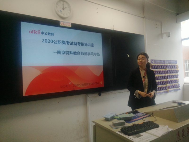 4月26日下午2点,管理学院在博雅楼2603举办了2020年国家公务员备考指导讲座,讲座邀请了中公教育骨干教师侯莹莹到场分享公考备考知识,2020届有意向参加公考的学生到场参加。