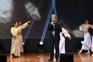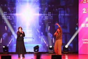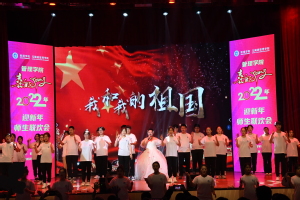 第二篇章“祖国之歌”,老师与同学们用歌舞和朗诵的形式表达了对祖国和党的热爱与赞美,《中华颂》、《党的英雄儿女》、《以先辈之裂魂,筑吾辈之风貌》等节目,深切地表达出管院师生对祖国母亲深沉的爱意。曹璇老师的《血染的风采》鼓舞人心,杨会良院长的《梦驼铃》把大家带入思念故乡之情,为联欢会增添了浓墨重彩的一笔。最后,整场联谊会在常晓茗副院长与特邀嘉旅法艺术家宾朱杰老师以及管理学院公共服务文艺队的手语舞《我和我的祖国》,悠扬的歌声中暖场收尾。