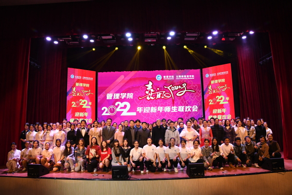 此次管理学院迎新年师生联欢会圆满结束,多才多艺的老师和同学们通过歌舞表演、手语舞蹈、朗诵等多形式的节目,表达了对祖国和党的热爱及赞颂, 充分展现了我院积极向上的精神风貌,促进了师生关系,增进了同学间的友谊。联欢会尾声,所有师生上台合影留念。(文/彭琳、图/孟丹,审核/杨会良)