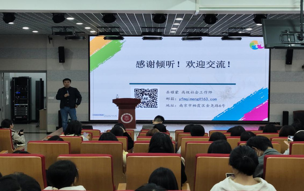 为提升志愿服务水平,培育高素质志愿力量,11月5日,“润德学术讲堂第十三讲:如何做一名优秀的志愿者”在江宁校区B101开讲。社会工作师委员会副总干事岳耀蒙先生担任主讲,与管理学院学子共同探索志愿服务的“进阶之路”。