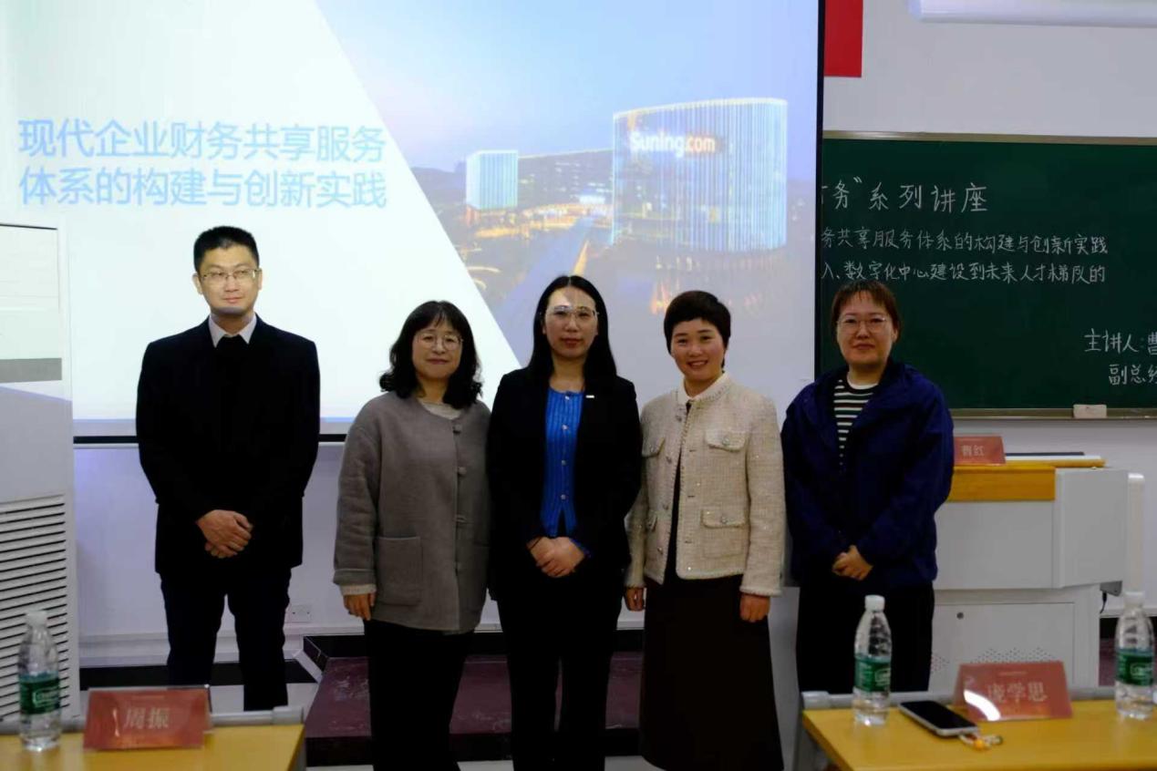 11月12日下午,管理学院“数智财务系列讲座”在江宁校区D410教室举行。本次讲座特邀南京苏宁云财信息技术有限公司副总经理、财务共享中心总监曹红担任主讲,财务管理系主任张海芹主持,120余名师生共同参与。