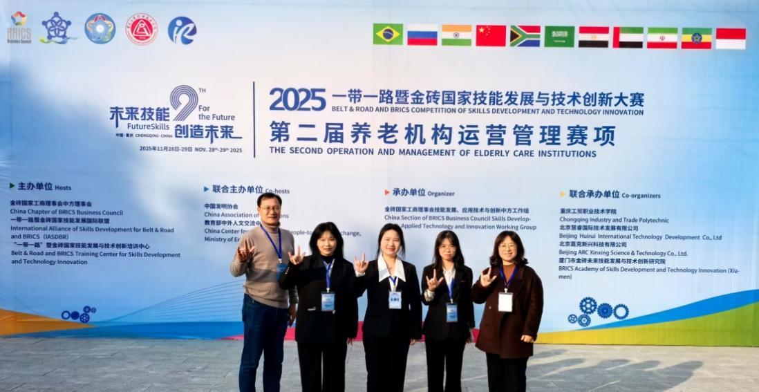 2025年11月28日至11月29日,2025一带一路暨金砖国家技能发展与技术创新大赛第二届养老机构运营管理赛项总决赛在重庆工贸职业技术学院隆重举行。管理学院无障碍管理专业的唐池、卢苒冉、郭紫滢团队凭借卓越的表现,荣获三等奖的优异成绩,为学院争光添彩。