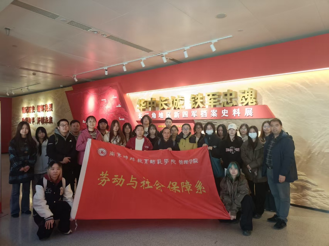 近日,一场特殊的“行走的博爱课”在江苏省档案馆此拉开帷幕。来自南京特殊教育师范学院管理学院管理学院劳动与社会保障专业的20余名学生和劳动与社会保障系全体教师,在专业负责人吴玉霞教授、劳动与社会保障系系主任郭佳佩博士的带领下,赴江苏省档案馆开展“追寻铁军精神”参观学习和思政教育活动。马克思主义学院陈文博士、社会保障系杨烨老师和江苏省档案馆的专家教员等,共同为大家讲解在抗日战争烽火连天的艰苦岁月里我党和新四军浴血奋战、最终迎来胜利的光辉历程,将课堂从书本与教室,延伸至历史的纵深,在“活”的档案中探寻中国社会主义建设和劳动与社会保障事业发展的源头活水。