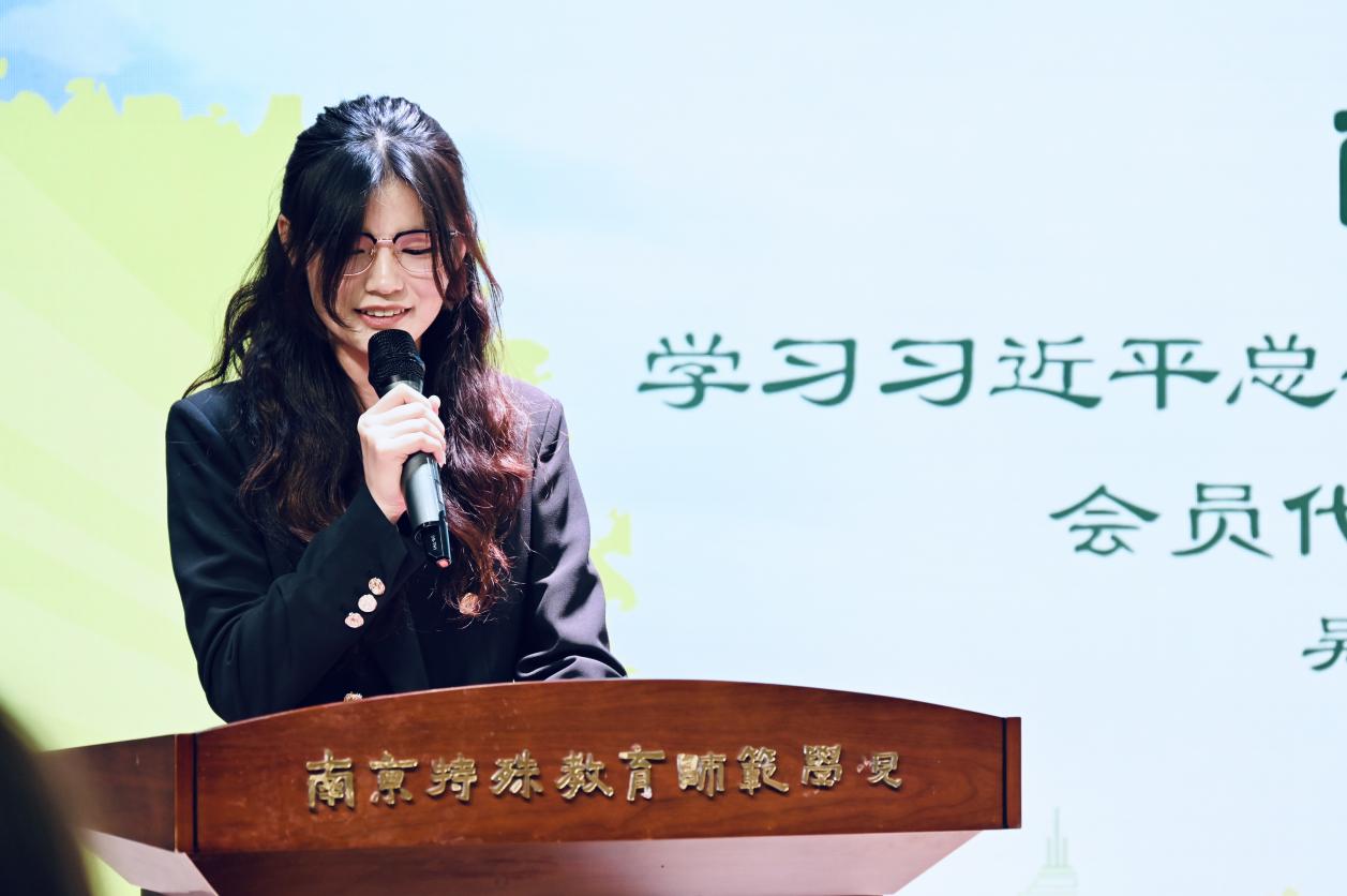 在体会分享环节,南京特殊教育师范学院学生会主席吴许晶分享了自己学习习近平总书记贺信精神的深刻体会。她表示,作为新时代的大学生,肩负着社会责任和使命,将以实际行动践行志愿精神,关心关爱残疾人群体,为他们提供力所能及的帮助。同时,她也呼吁更多同学加入到志愿助残队伍中来,用青春和爱心传递温暖与力量。