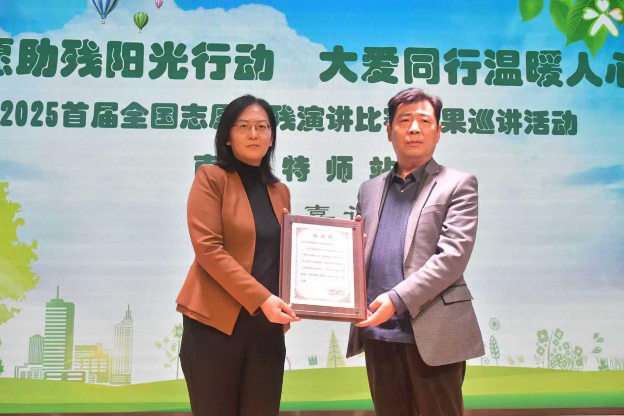 活动现场举行了组织嘉许仪式。中国助残志愿者协会与星云文化教育公益基金会向承办方南京特师管理学院颁发致谢匾,表彰其为活动搭建平台的贡献;管理学院向主办单位回赠答谢礼,象征公益协作情谊。随后,承办方向全体巡讲选手颁发纪念证书及答谢礼,感谢他们以演讲传递助残力量。荣誉与感谢化作动力,激励各方持续投身志愿助残事业,让爱心火种永续传递。