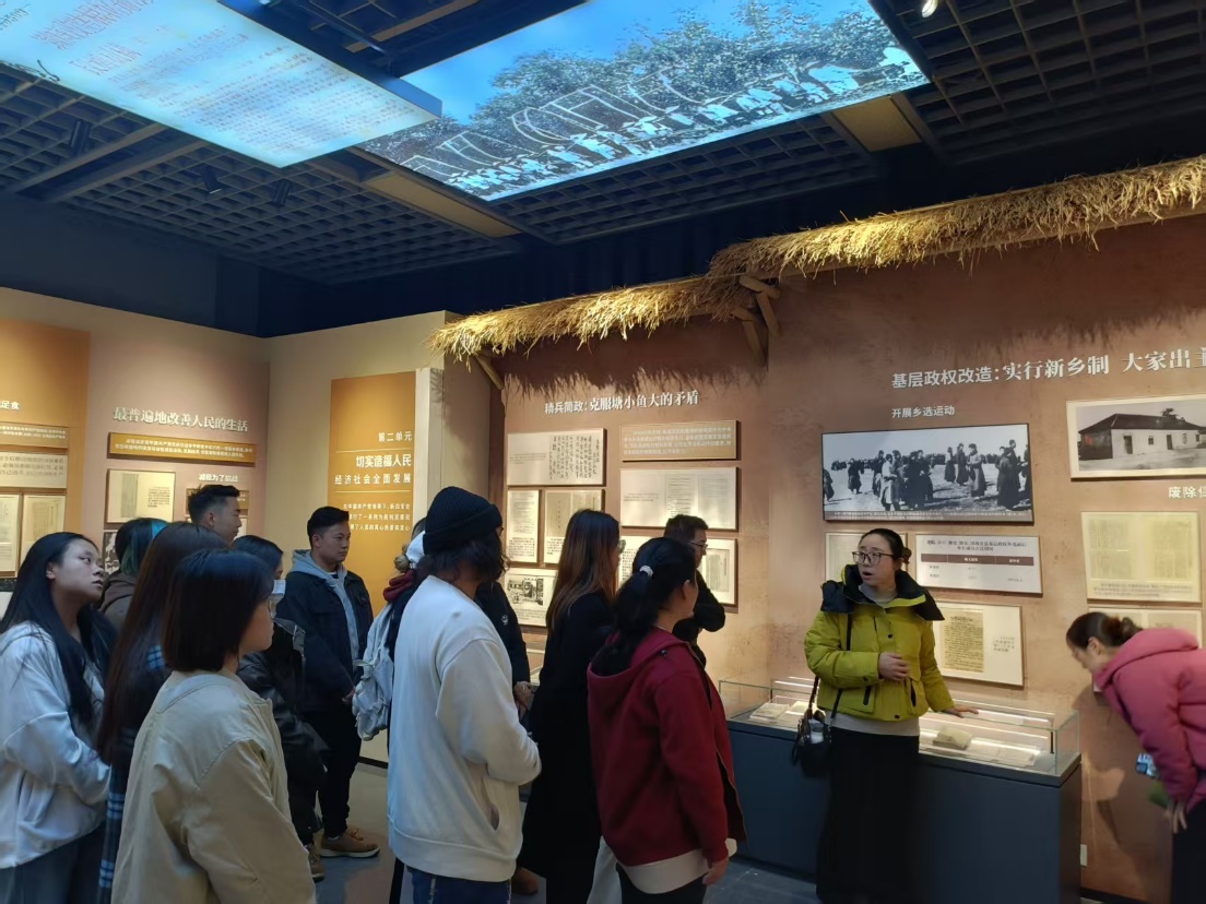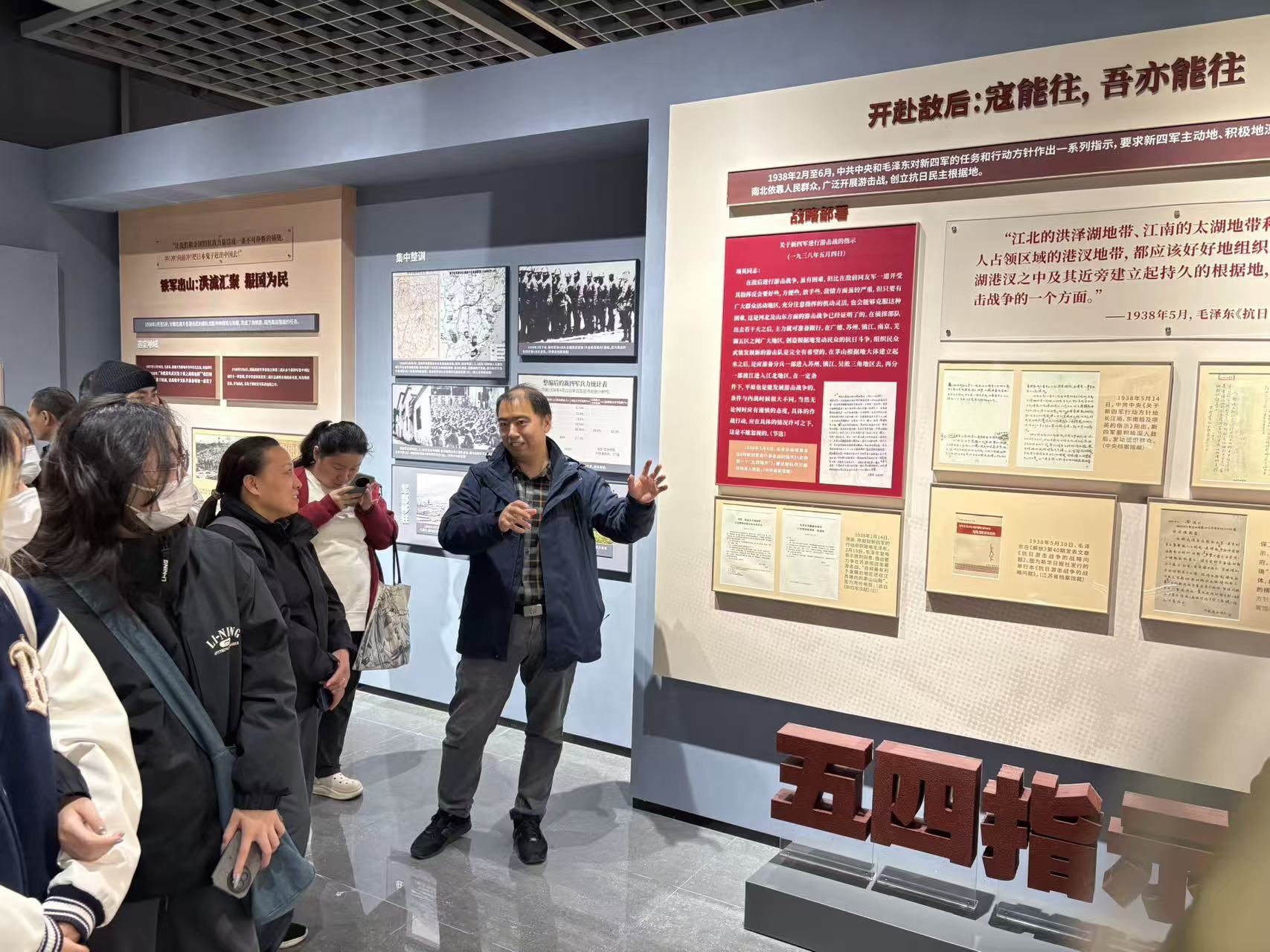 课程伊始,江苏省档案馆的专业讲解员带领学生们步入展厅。泛黄的历史照片、斑驳的旧物、珍贵的文献档案,无声诉说着那段烽火连天的岁月。从新四军的组建背景,到艰苦卓绝的敌后游击战,再到建立抗日根据地的艰难历程,讲解员将新四军在江苏的抗战史娓娓道来。这堂历史文化课,为学生们构建了一个宏大的时代背景,让他们对全民族抗战和人民当家作主的新政权建设“为什么是中国共产党?”这一根本问题有了更为直观和感性的认识。