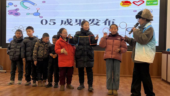 在AI科技课堂上,志愿者用通俗易懂的语言拆解人工智能的奥秘,通过动画短片展示AI在高原生态监测、藏文化数字化保护等领域的创新应用。孩子们在志愿者的指导下,亲身体验简易AI图像识别小程序,尝试用语音指令控制智能玩具,并亲手搭建“AI垃圾分类演示模型”。科技带来的新奇体验让孩子们充满探索欲,志愿者们鼓励孩子们:“科技的世界藏着无限可能,愿你们以知识为翼,在科技的天空中自由翱翔。”