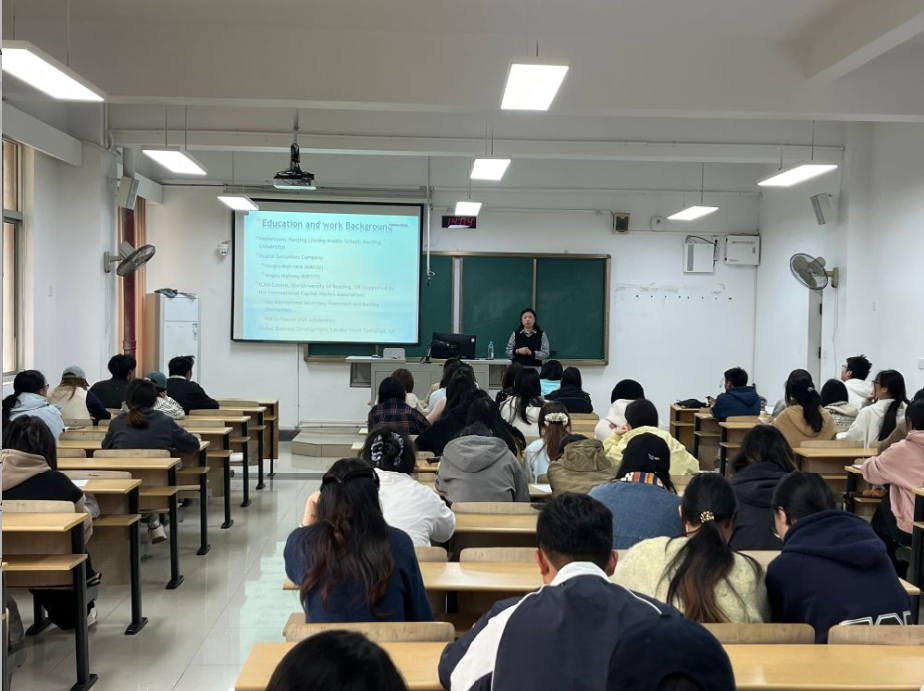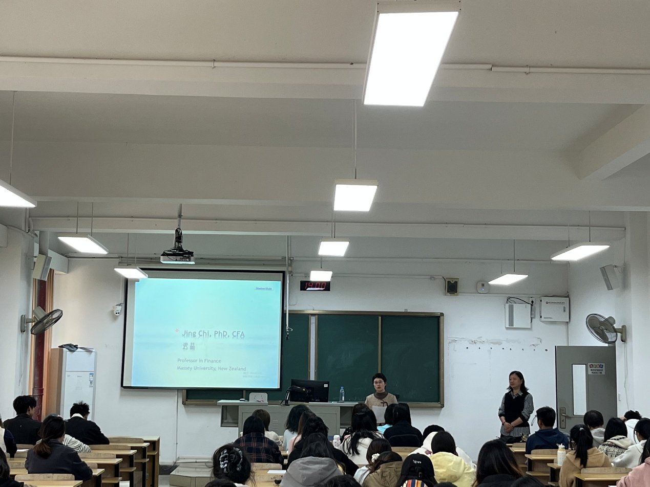 讲座伊始,张海芹老师介绍了主讲人迟晶教授的学术与业界背景。迟晶教授现任梅西大学博士生导师、国际合作委员会主任,英国雷丁大学博士、注册金融分析师(CFA),曾任职于华泰证券公司投资银行部、英国伦敦证券交易所,在金融领域发表国际论文50余篇,还曾获新西兰全国高等教育优秀教学奖等多项荣誉,兼具深厚学术功底与丰富业界经验。张老师重点提及,我校已与梅西大学签订“南京特殊教育师范学院本科项目与梅西大学管理学硕士(所有专业)或金融学硕士3.5+180个学分衔接项目”,为学生留学深造搭建了优质平台。